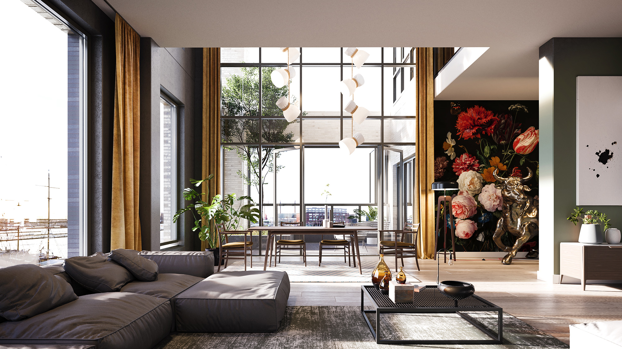 De indeling en afwerking bepaal je helemaal zelf, volledig naar eigen smaak en wensen. De ruimtelijkheid van alle appartementen wordt benadrukt door de spectaculair hoge plafonds tot wel 4,30 meter en de hoge glazen puien. Bij het ontwerp kan worden gespeeld met lichtinval, functionaliteit en sfeerbeleving. Ter inspiratie zijn voor ieder appartement indelingssuggesties geschetst. Alle kopers creëren hun eigen penthouse of sky appartement en bouwen deze om tot een woning met klasse.